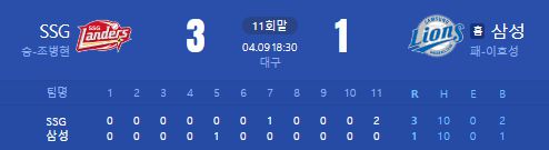 [삼성 라이온즈] KBO 삼성 VS SSG 9일 경기 결과 분석