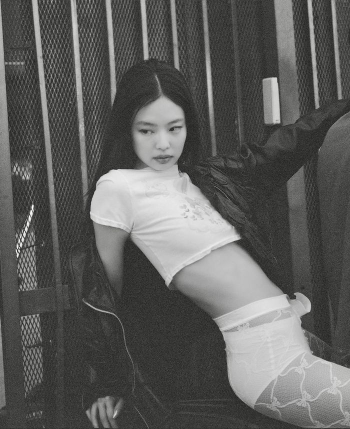 공개된 사진 속 제니는 상의를 탈의한 채 작은 소품으로만 가슴을 가리고 포즈를 취하고 있다. 다른 사진 역시 전신 시스루로 파격적인 노출을 하고 있다.
