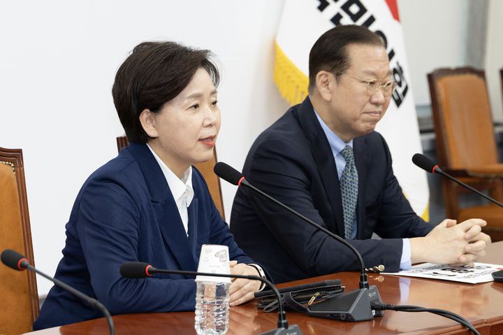 [서울=뉴시스] 조성봉 기자= 양향자 개혁신당 전 의원이 10일 오후 서울 여의도 국회에서 권영세(오른쪽) 국민의힘 비상대책위원장에게 입당원서를 전달하고 소감을 밝히고 있다. (사진=국민의힘 제공) 2025.04.10. photo@newsis.com *재판매 및 DB 금지 |