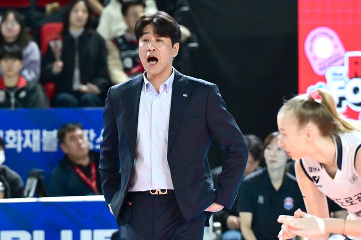 [서울=뉴시스] 여자배구 한국도로공사 김종민 감독이 지난달 19일 대전충무체육관에서 열린 도드람 2024~2025 V-리그 여자부 정관장과의 경기에서 선수들의 경기를 지켜보고 있다. (사진=KOVO 제공) 2025.03.19. *재판매 및 DB 금지 |