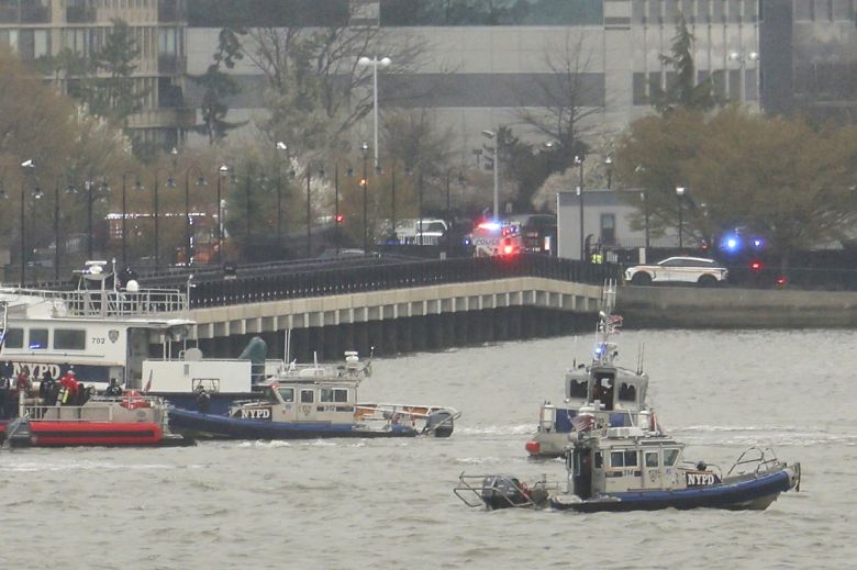 10일(현지시간) 미국 뉴욕 로어맨해튼 인근 허드슨강 헬기 추락 현장에서 뉴욕과 뉴저지의 경찰과 소방대원이 구조·수색 작업을 벌이고 있다. AP연합뉴스 |