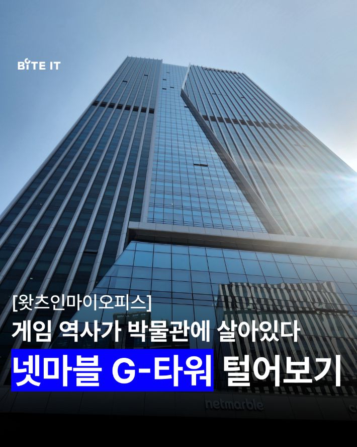 G-타워의 첫 인상은 '와 높다'였습니다. 고개를 한껏 꺾어 들어 올려도 건물의 꼭대기를 보기가 어려울 정도로 압도적인 높이를 자랑하고 있는데요. 대부분의 넷마블의 계열사들은 물론 개발사들도 한 건물에 모여 있습니다. 지상 3층까지는 일반 시민들에게 개방해 지역과의 상생도 강조했습니다.