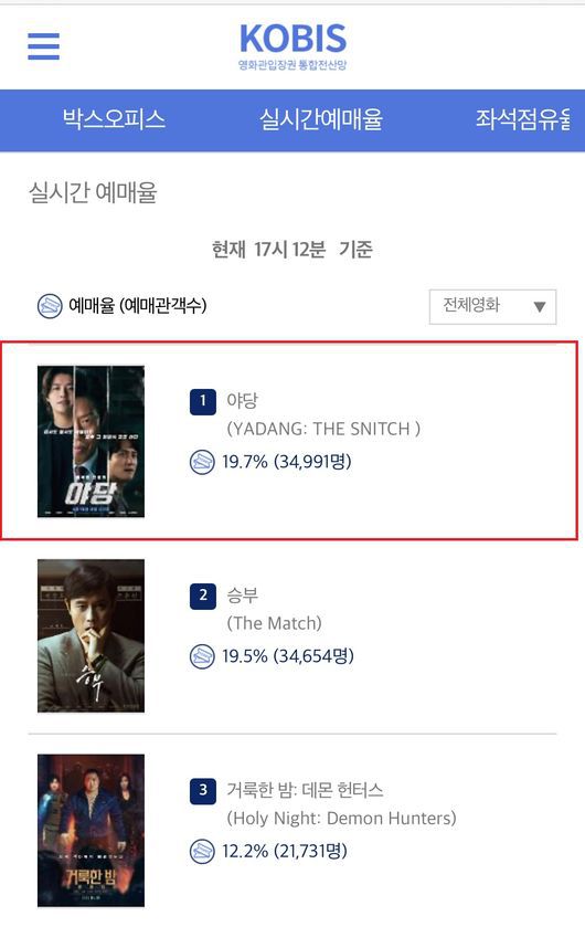 [OSEN=유수연 기자] 영화 '야당'(감독 황병국, 제공/배급 플러스엠 엔터테인먼트, 제작 하이브미디어코프)이 개봉을 4일 앞두고 전체 예매율 1위를 기록하며 4월 극장가의 가장 강력한 흥행 주자로 부상했다.