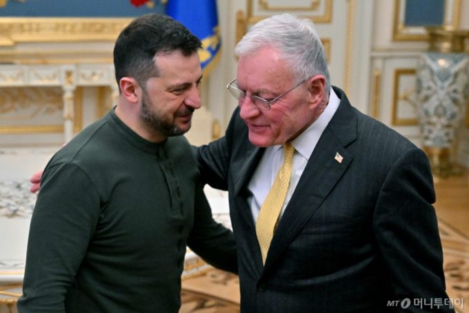 (키이우 AFP=뉴스1) 우동명 기자 = 볼로디미르 젤렌스키 우크라이나 대통령이 20일(현지시간) 키이우를 방문한 키스 켈로그 미국의 우크라이나·러시아 특사와 만나 얘기를 하고 있다. 2025.02.21 ⓒ AFP=뉴스1 Copyright (C) 뉴스1. All rights reserved. 무단 전재 및 재배포, AI학습 이용 금지. /사진=(키이우 AFP=뉴스1) 우동명 기자 |