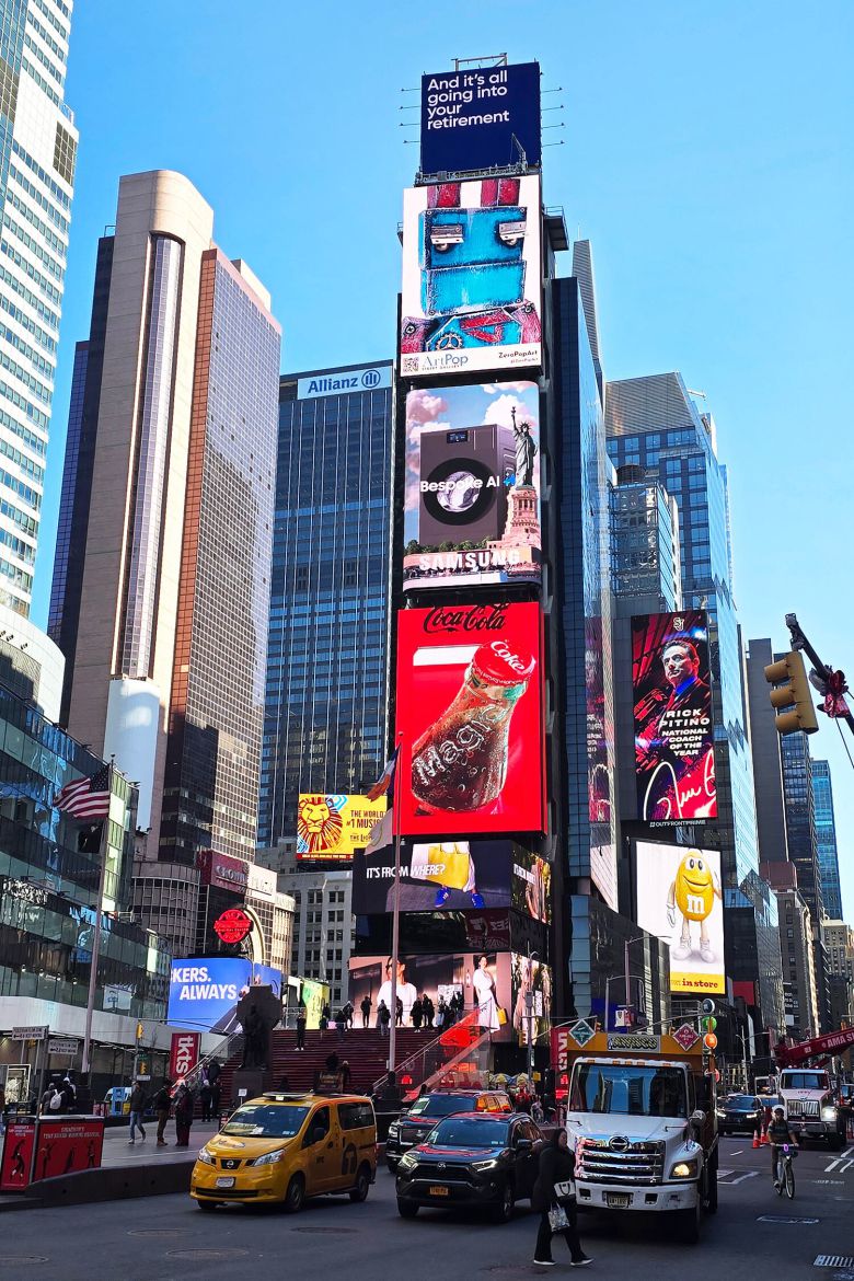 삼성전자가 미국 뉴욕 타임스 스퀘어에서 진행하는 '비스포크 AI' 옥외광고 모습. /삼성전자 제공 |