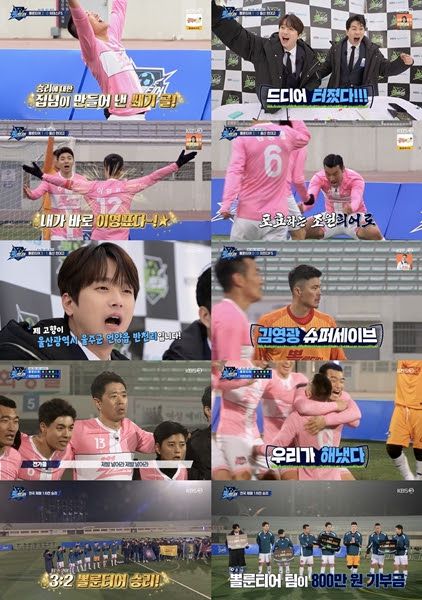이찬원의 응원이 빛을 발했다. '뽈룬티어'가 극적인 승리를 거두며 기부금 800만 원을 획득했다.