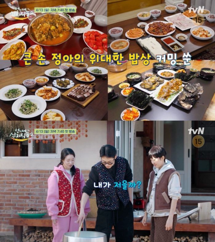 또한 이날 방송에서는 각양각색 사 남매의 매력이 드러나며 시청자들을 사로잡을 예정이다. 여전히 부지런하고 여전히 손이 큰 염 대장 염정아를 중심으로, 넘치는 흥을 주체할 수 없는 러블리 흥부자 박준면, 일도 먹는 것도 진심인 셋째 임지연, 누나들을 사로잡는 스윗한 일잘러 만능 막내 이재욱이 본격 겨울나기를 시작하며 찐 남매 케미를 빛낸다.