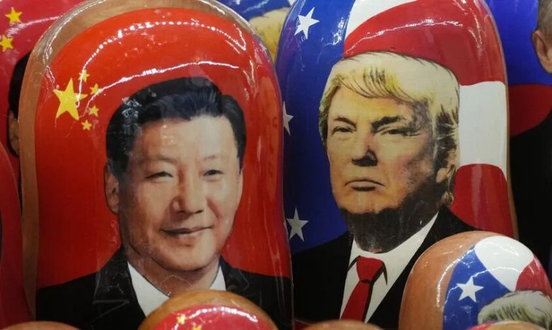 러시아 나무 인형에 시진핑 중국 국가주석, 도널드 트럼프 미국 대통령의 얼굴이 그려져 있다. AP 연합뉴스 |