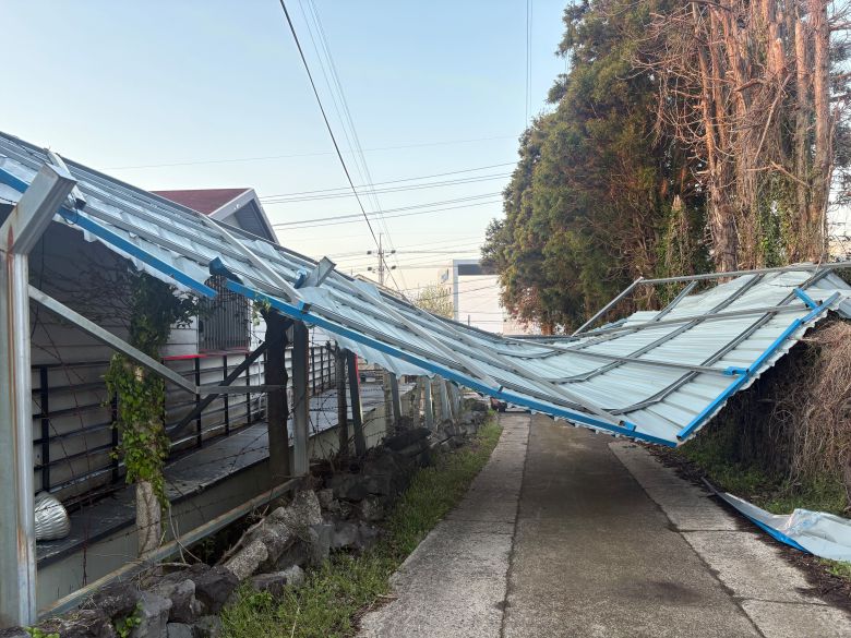 이어 오전 8시 53분쯤 서귀포시 서호동에 있는 한 빌라의 아연판 지붕 일부가 날아갔으며, 오전 11시 11분쯤 제주시 노형동에서도 아연판 지붕 일부가 파손됐다.