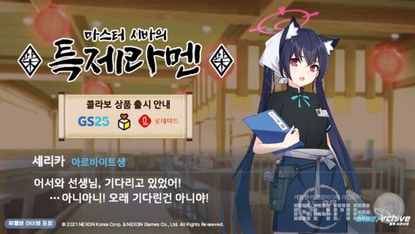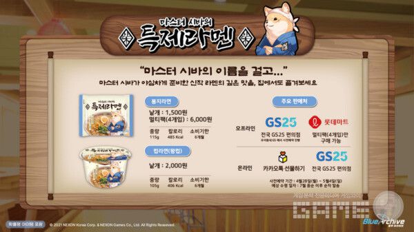 여러 컬레버레이션 상품도 공개했다. '블루 아카이브' SD 일러스트가 그려진 특별 바이시클 카드와 GS25 편의점과 롯데마트에서 판매하는 마스터 시바의 특제 라멘도 공개했다. 특제 라멘은 4월 28일부터 소진시까지 판매된다. 이외에도 무신사와의 컬레버레이션을 통해 크리틱, 디스커스 애슬래틱과의 협업 의류 및 굿즈도 출시할 예정이다.