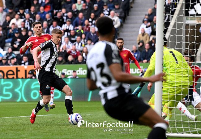 뉴캐슬이 계속해서 몰아쳤다. 강력한 전방 압박을 펼치면서 맨유의 수비진 실수를 유도했다.