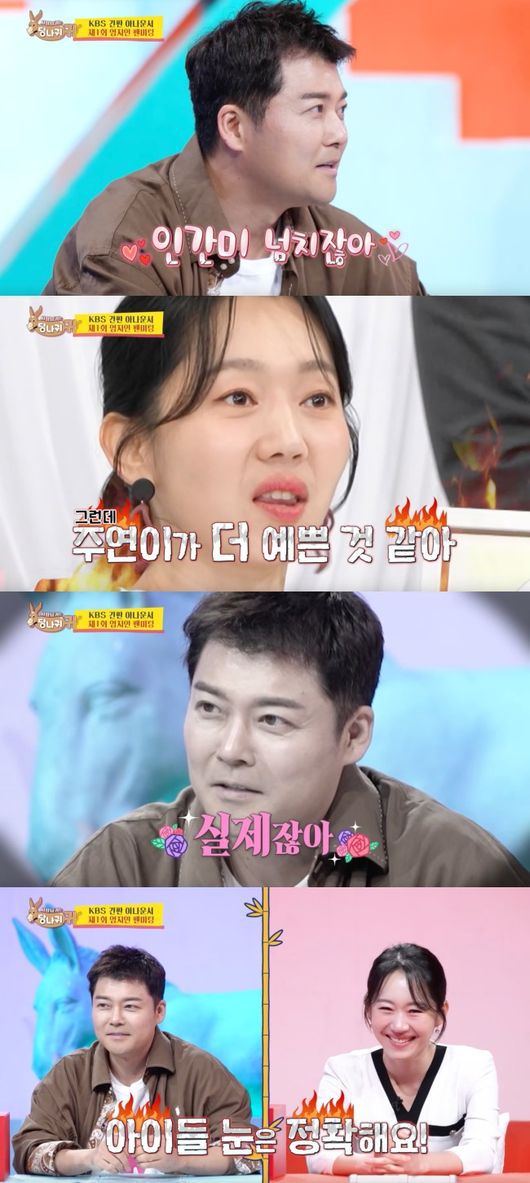 그런가 하면 전현무는 홍주연과의 실제 같은 가짜 결혼설을 즐기는 듯한 모습이기도 했다. 홍주연과의 관계에 대해 부정하기보다는 열애설을 즐겼고, 이날 방송에서도 전현무는 엄지인 아나운서가 팬에게 선물받은 그림을 보고 “주연이가 더 예쁜 것 같다”라고 말하자 “실제잖아”라면서 홍주연에 대한 관심을 드러냈다. 또 음치인 듯한 홍주연의 모습을 보고 “인간미 넘치잖아”라면서 감싸기도 했다. ‘사당귀’에서 만든 홍주연과의 열애 세계관에 푹 빠진 모습이었다. /seon@osen.co.kr