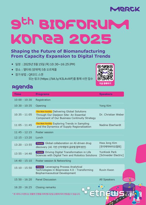 한편 '제9회 머크 바이오 포럼 코리아 2025'는 이달 30일까지 사전 등록 링크에서 참여 신청하면 된다.