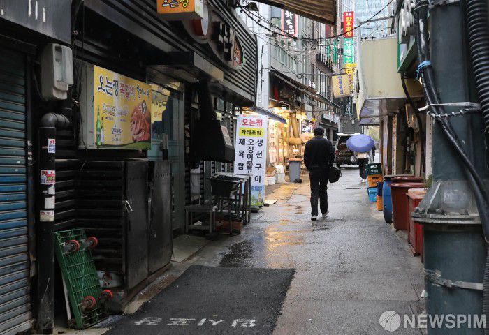 [서울=뉴스핌] 양윤모 기자 = 통계청의 올해 2월 숙박·음식점업 생산지수가 103.8로 1년 전보다 3.8% 감소했으며,관련 지수가 22개월째 한 차례도 반등하지 못한 것은 2000년 통계 작성 이후 처음이다. 14일 서울 종로구의 식당들이 손님을 기다리고 있다. 2025.04.14 yym58@newspim.com