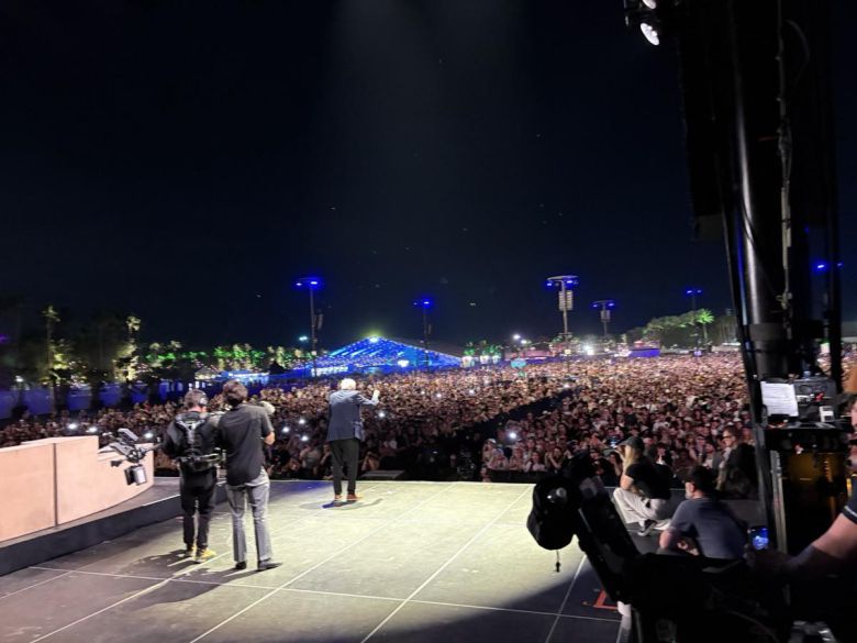 버니 샌더스 상원의원이 12일(현지 시간) 미 캘리포니아주 인디오에서 열린 ‘코첼라 2025’ 무대에 깜짝 등장해 3분간 연설하고 있다. 그는 자신의 소셜미디어에 이 사진을 올리며 “땡큐 코첼라”라고 적었다. 사진출처 샌더스 X