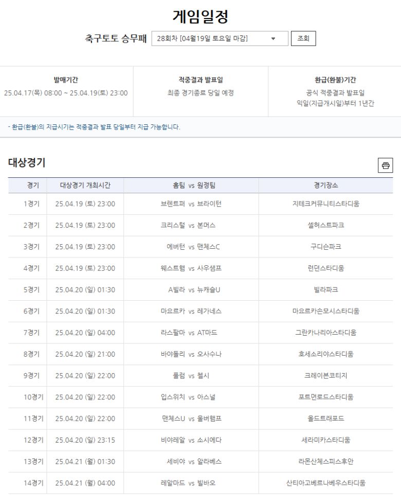 축구토토 승무패 28회차, 17일 발매 개시…EPL·라리가 주요 경기 포함
