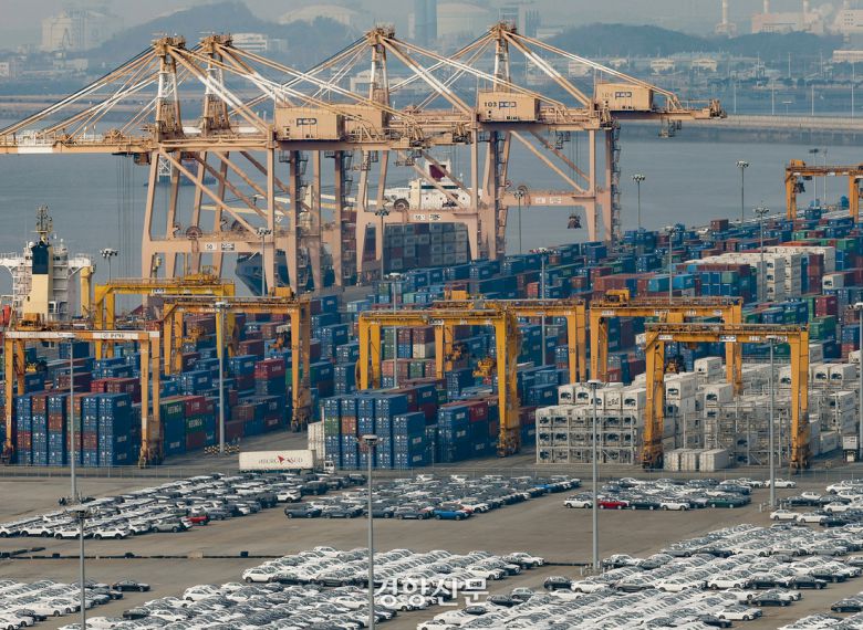 지난 2월16일 경기 평택항에 선적을 기다리고 있는 수출용 자동차가 줄지어 서 있다. 문재원 기자 |