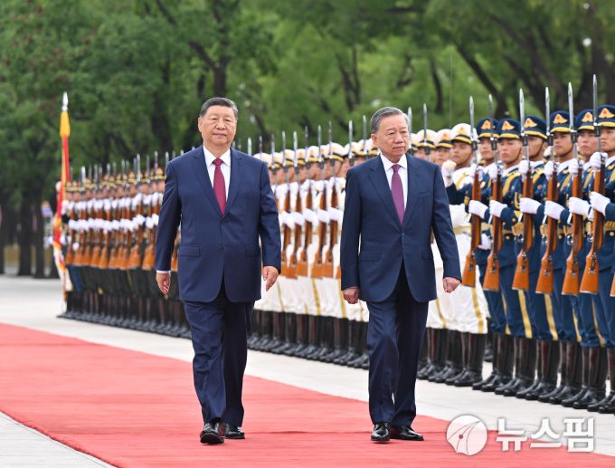 시진핑 중국 국가주석이 지난해 8월 베이징을 방문한 또 럼 베트남 공산당 서기와 행진하고 있다. [신화사=뉴스핌 특약] |