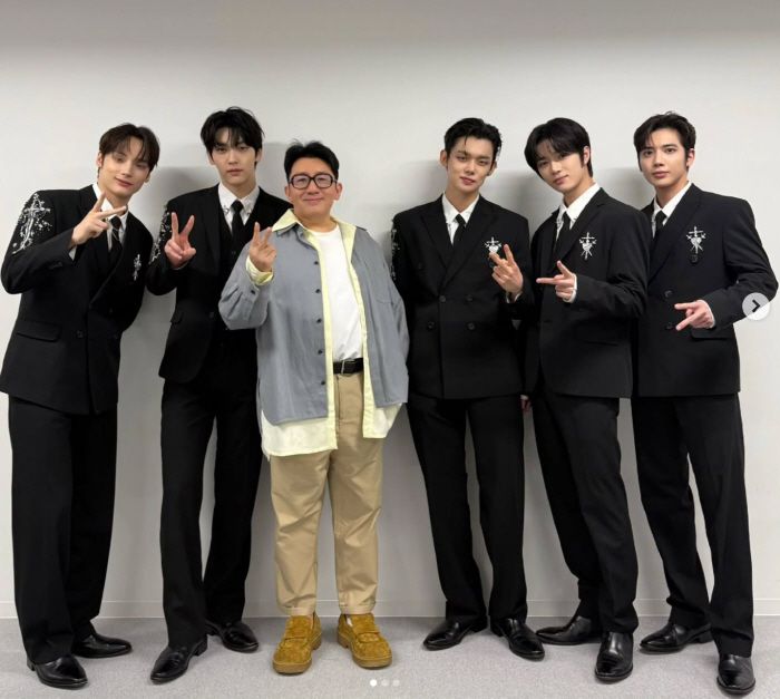 공개된 사진 속 방시혁은 투모로우바이투게더 일본 가가와현 콘서트 공연을 관람한 모습. 투모로우바이투게더 사이에 선 방 의장은 최근 다이어트에 성공한 듯 홀쭉한 얼굴과 슬림해진 몸매를 자랑했다.