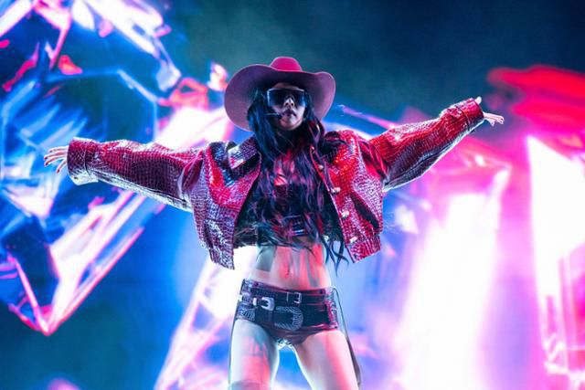 셋째 날인 13일에는 리사의 바통을 이어받아 블랙핑크 동료 제니가 무대에 올랐다. 최근 솔로 데뷔 앨범 ‘루비’를 내놓으며 한국과 미국에서 콘서트를 열었던 그는 40여 분의 공연 시간에 맞춰 단독 콘서트와는 다른 연출과 편곡으로 현지 팬들과 다시 만났다. 서부영화에서 가져온 듯한 스타일의 의상과 소품을 입고 등장한 제니는 의상 교체 시간을 줄이는 등 압축적 구성으로 솔로 앨범의 정수를 전했다. 한층 화려해진 안무와 함께 ‘필터’ ‘만트라’ ‘스타트 어 워’ ‘라이크 제니’ 등을 쏟아내자 관객은 뜨거운 갈채로 화답했다. ‘댐 라이트’를 부를 땐 미국 팝스타 칼리 우치스가 깜짝 등장해 호흡을 맞추기도 했다. 제니는 “여기 돌아와 공연하게 돼 꿈만 같다”면서 “이렇게 많은 관객이 모일지 예상하지 못했는데 제 무대에 찾아와 주셔서 감사하다”고 인사했다.