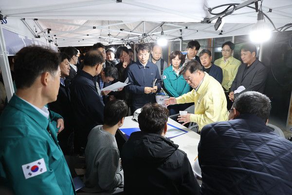 소방당국은 50대 노동자 수색 작업을 밤사이에도 계속한다는 계획이다.
