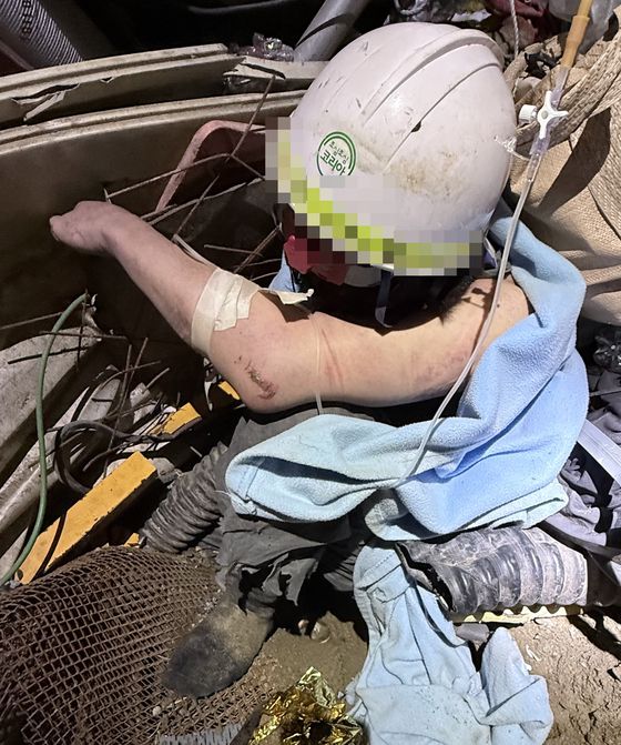 광명 신안산선 붕괴 현장에서 13시간 만에 구조된 굴착기 기사. [사진 경기도소방재난본부]