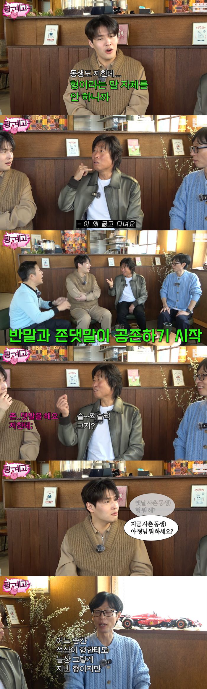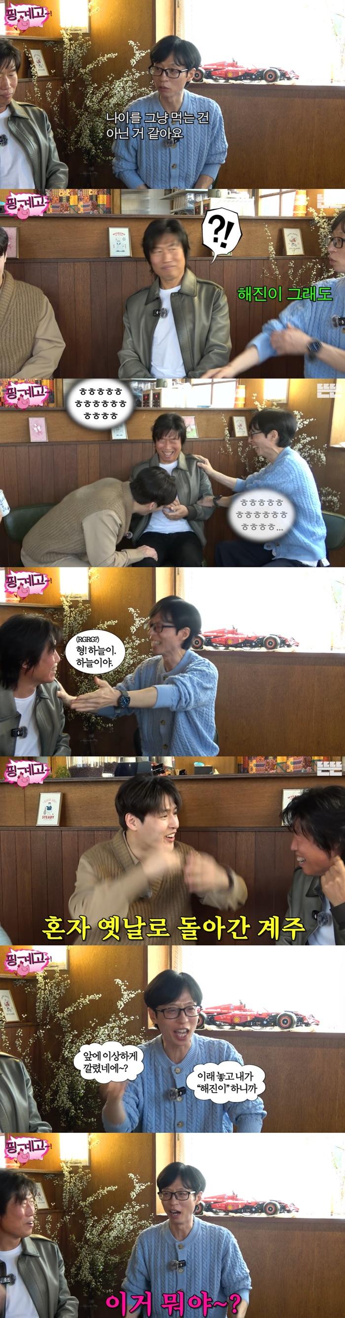 하지만 그는 이내 3살 형인 유해진을 보고 "해진이 그래도"라고 이야기를 이어가다가 당황해 모두에게 웃음을 안겼다.
