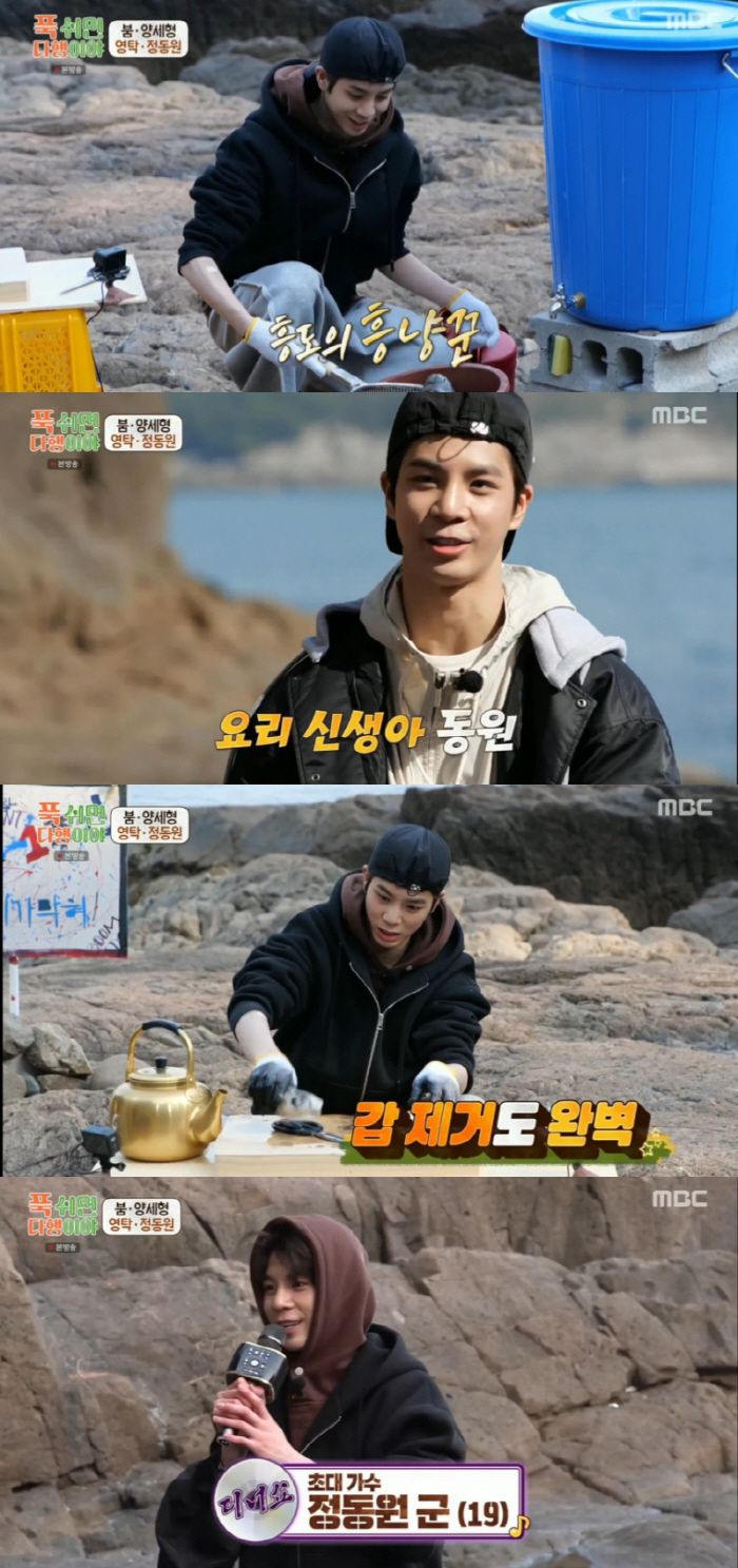 특히, 평소 "라면도 안 해 먹는다. 음식 자체를 안 해 먹는다"라며 해산물 손질이 처음임을 밝힌 정동원은 현장에서 손질법을 배운 후 그대로 따라하는 빠른 습득력과 재능으로 출연진들의 감탄을 자아냈다.
