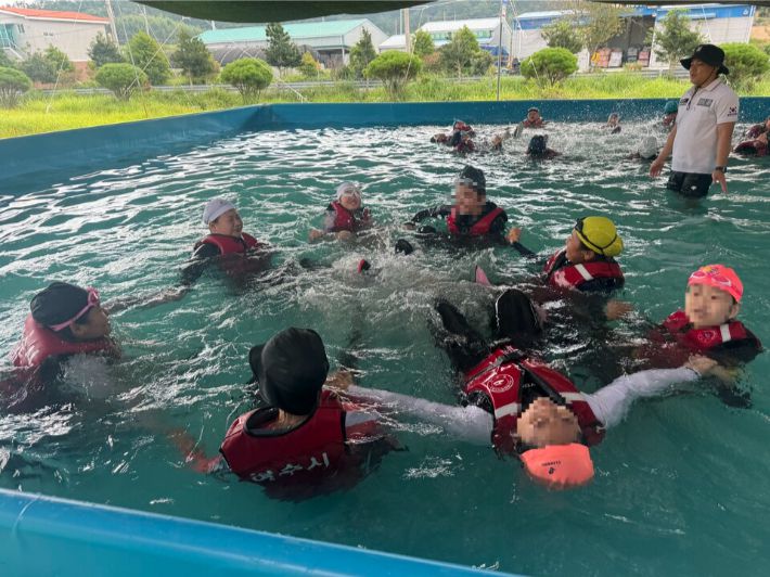 초등학생 생존수영 교육 현장. 여수시 제공