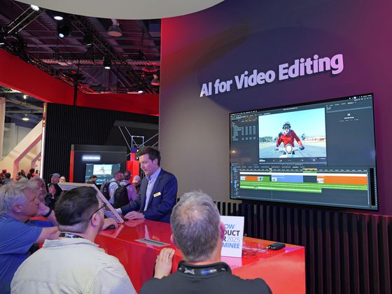 이번 박람회의 핵심은 AI입니다. 카메라 제조사든 프로그램 제작사든 너도나도 AI를 전면에 내세웠습니다. 그중 가장 눈에 띄는 기업은 어도비(Adobe)였습니다. 영상 편집 프로그램 프리미어와 사진 편집 프로그램 포토샵으로 유명한 어도비는 부스 곳곳에 '영상 편집을 위한 AI'란 캐치프레이즈를 내걸었습니다.