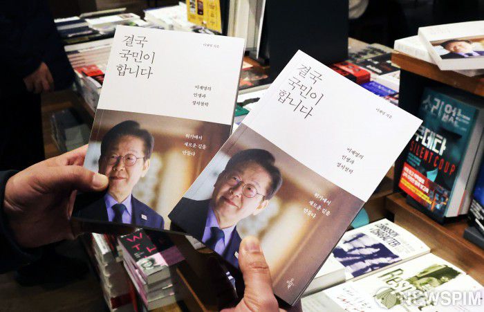 [서울=뉴스핌] 양윤모 기자 = 15일 6·3 대선을 앞두고 서울 종로구 교보문고에 이재명 더불어민주장 후보의 저서인 '결국 국민이 합니다'출판되어 진열되고 있다. '결국 국민이 합니다'는 이재명의 시선으로본 2024년 12월 3일 ‘내란의 밤’부터 윤석열 대통령 탄핵소추안 가결, 2025년 4월 4일 헌재의 파면 선고까지를 기록하고 있다. 2025.04.15 yym58@newspim.com