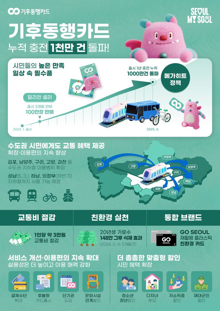기후동행카드, 1년 3개월만에 누적충전 1000만건 돌파…인기비결 살펴보니