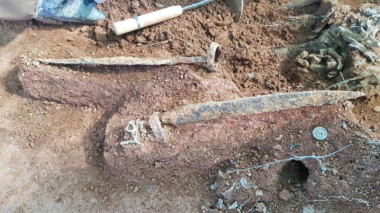지금까지 25구의 유해가 발굴된 가운데 40㎝가량의 녹슨 금속도 5개 발견됐습니다.