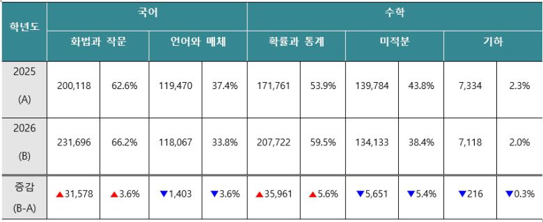 국어-수학 영역 ‘화법과 작문’, ‘확률과 통계’ 응시자 증가
