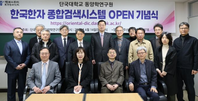 '한국한자 종합검색시스템' 오픈 기념식에 참석한 단국대 동양학연구원 구성원들./사진제공=단국대 |