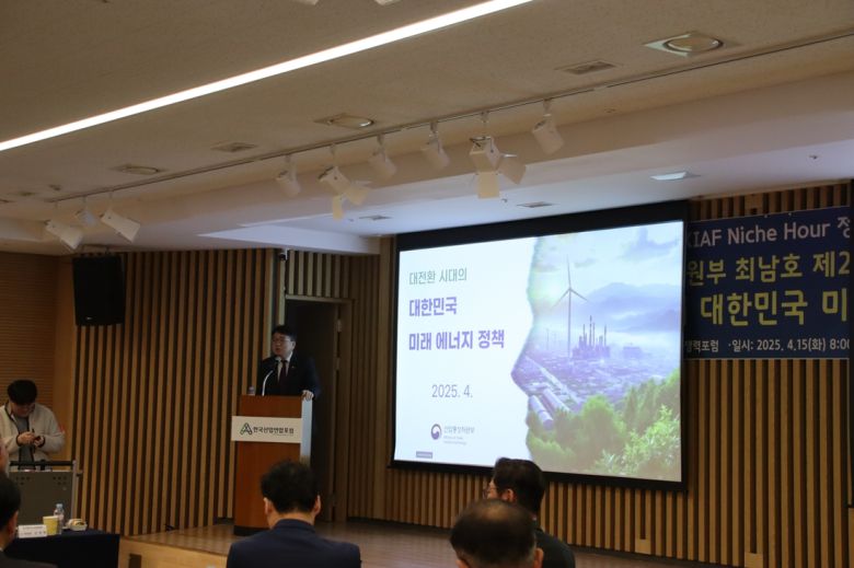 최남호 산업통상자원부 2차관이 15일 서울 서초구 자동차회관에서 한국산업연합포럼이 개최한 ‘대전환 시대의 대한민국 미래 에너지 정책’ 정책강연에서 발언하고 있다. 한국산업연합포럼 제공 |