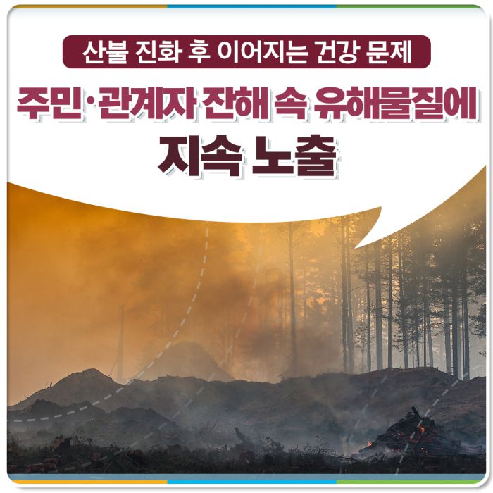 때문에 산불 진화는 물론 잔해 정리에 참여하는 △소방관 △산불재난특수진화대 △군인 △자원봉사자 △인근 주민들은 건강 이상에 대해 지속적으로 추적 관리하는 것이 필요합니다.