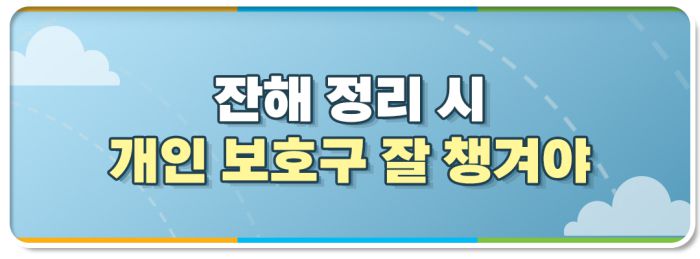 산불 잔해에 따른 2차 건강 피해를 최소화 하려면 △방진‧방독이 동시에 가능한 마스크 △인증된 보호복 △일반 작업 장갑이 아닌 보호용 장갑 등 개인 보호구를 잘 챙겨야 합니다.