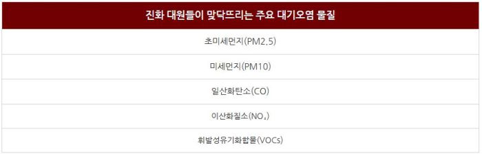 가천대 길병원 직업환경의학과 함승헌 교수는 "주요 오염 물질은 초미세먼지(PM2.5), 미세먼지(PM10), 일산화탄소(CO), 이산화질소(NO₂), 휘발성유기화합물(VOCs) 등 복합적인 대기오염 물질"이라고 설명했습니다.