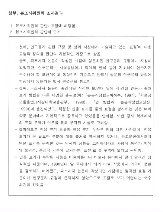 위원 일부는 "1990년대 말 국내에서 해외 미술 작품이나 외국어 문헌을 검토하기 어려웠다"는 소수 의견을 내기도 했습니다.