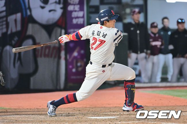 [OSEN=부산, 이석우 기자] 15일 부산 사직야구장에서 2025 신한 SOL 뱅크 KBO 리그 롯데 자이언츠와 키움 히어로즈의 경기가 열렸다. 홈팀 롯데는 나균안, 방문팀 키움은 로젠버그가 선발 출전했다. 롯데 자이언츠 유강남이 5회말 1사 만루 좌익수 앞 1타점 안타를 치고 있다. 2025.04.15 / foto0307@osen.co.kr 이 기사의 카테고리는 언론사의 분류를 따릅니다.0공유하기