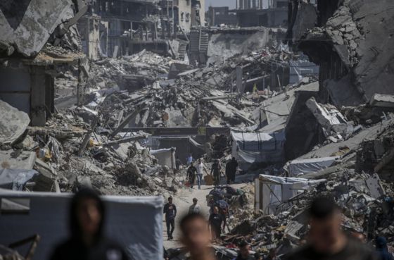 지난 3일 가자지구 북부 난민 캠프 내 파괴된 건물 잔해를 지나가고 있는 팔레스타인들. 이스라엘군은 지난 1월 하마스와 합의한 휴전 이후 논의가 더 이행되지 못하자 지난달 18일 가자지구에 대한 공습을 재개했다. 〈사진=EPA, 연합뉴스〉