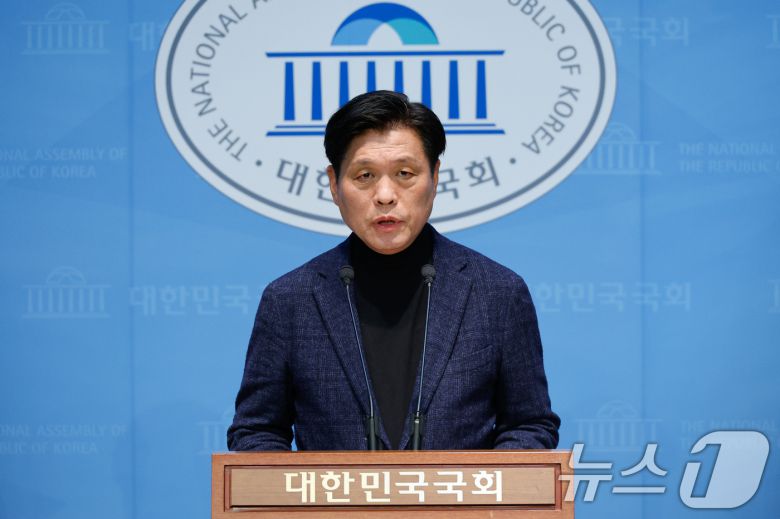 조승래 더불어민주당 수석대변인이 8일 오후 서울 여의도 국회 소통관에서 윤석열 대통령 석방 관련 브리핑을 하고 있다. 2025.3.8/뉴스1 ⓒ News1 안은나 기자 |