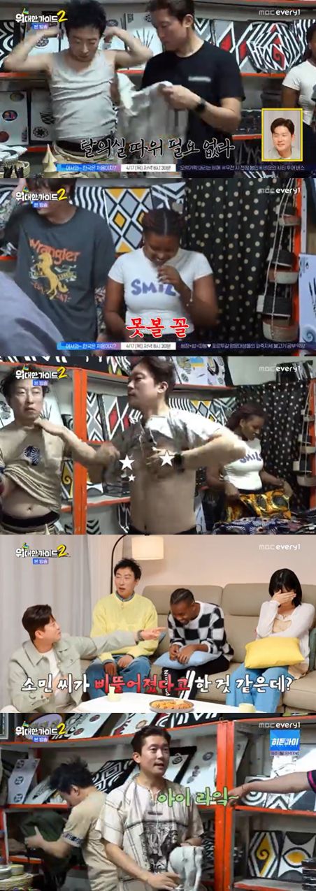 현지 옷 가게에 간 이들은 각자 마음에 드는 옷을 골랐다. 최다니엘은 프린팅이 화려한 셔츠를 고르며 어떠냐고 물었지만, 김대호는 "얘가 옷을 고르는 눈은 별로 없는 것 같아요"라며 말했다.