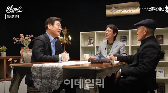 더불어민주당 대선 경선 주자인 이재명 전 대표가 유시민 작가, 도올 김용옥 선생과 새 정부의 과제 등을 주제로 대담한 영상이 15일 ‘사람사는 세상 노무현 재단’ 유튜브 채널을 통해 공개됐다 (사진=‘사람사는 세상 노무현 재단’ 유튜브 영상 캡처)