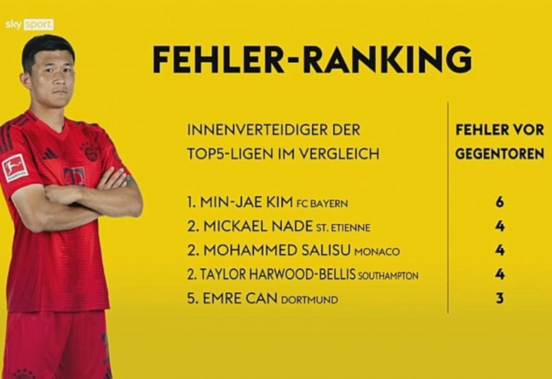 (엑스포츠뉴스 김현기 기자) 독일 최고 명문인 바이에른 뮌헨이 수비수 김민재를 올여름 시장에 내놓을 수 있다고 주장한 가운데, 그가 유럽 5대리그에서 실점으로 연결된 실수 수치에서 독보적인 1위를 기록한 것으로 드러났다.