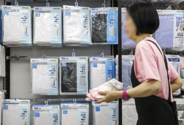 서울시내 다이소 매장에 '이지쿨 의류'가 진열되어 있다. 가격은 2000~5000원이다. /사진제공=뉴시스 |