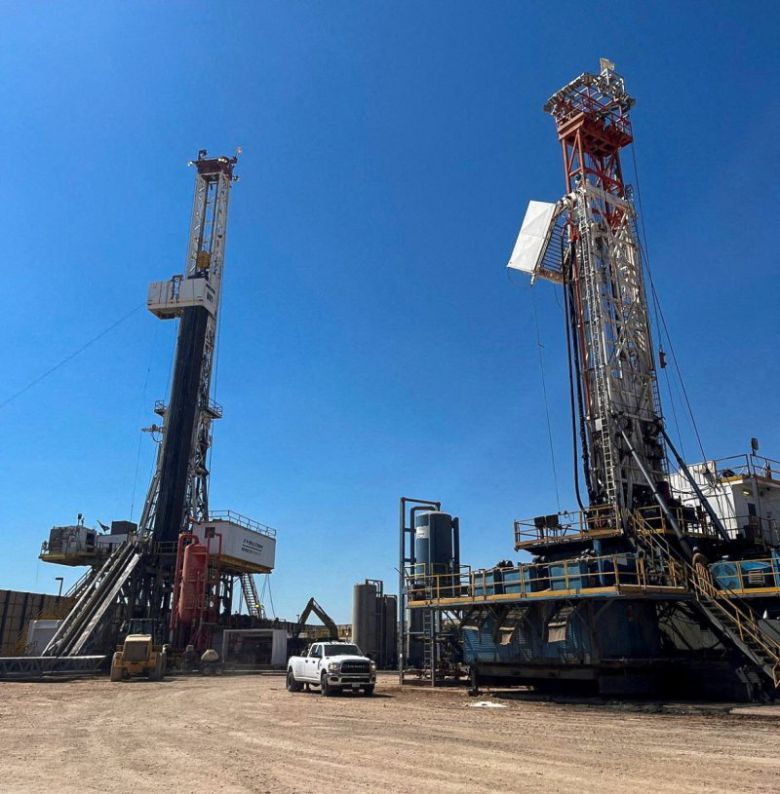 국제에너지기구(IEA)가 15일(현지시간) 세계 석유 수요 전망 둔화 흐름에 합류하면서 국제 유가가 사흘 만에 하락했다. 지난해 10월 8일 미국 텍사스주 미들랜드 유전에 석유 시추 장비가 서 있다. 로이터 연합