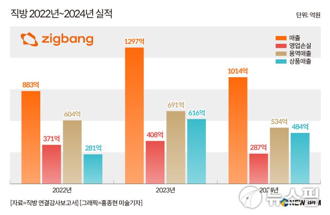 직방 2022년~2024년 실적. [그래프=홍종현 미술기자]