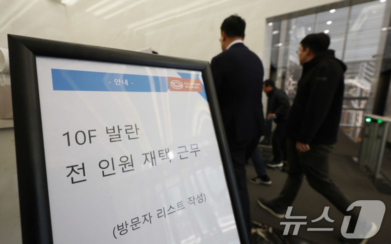 1일 서울 강남구 발란 본사 로비에 '발란 전 인원 재택근무'라고 적힌 안내문이 놓여있다. 정산 지연 사태로 논란을 빚은 국내 1위 온라인 명품 플랫폼 발란은 지난 31일 끝내 기업회생절차를 신청했다. 2025.4.1/뉴스1 ⓒ News1 박지혜 기자